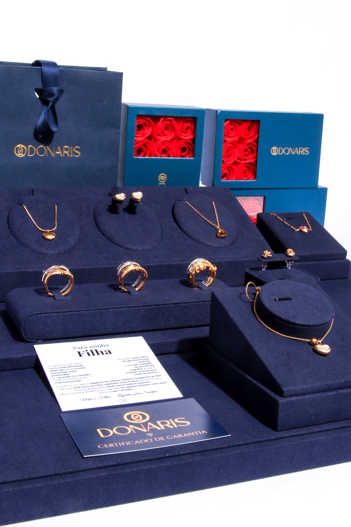 Na Donaris, acreditamos que um presente vai além de um objeto; ele carrega emoções, histórias e momentos únicos. Criamos jóias que não só brilham pela beleza, mas também pelo sentimento que despertam. Cada peça é pensada para ser o elo que une corações, eternizando as memórias e os gestos de carinho que fazem a diferença.
