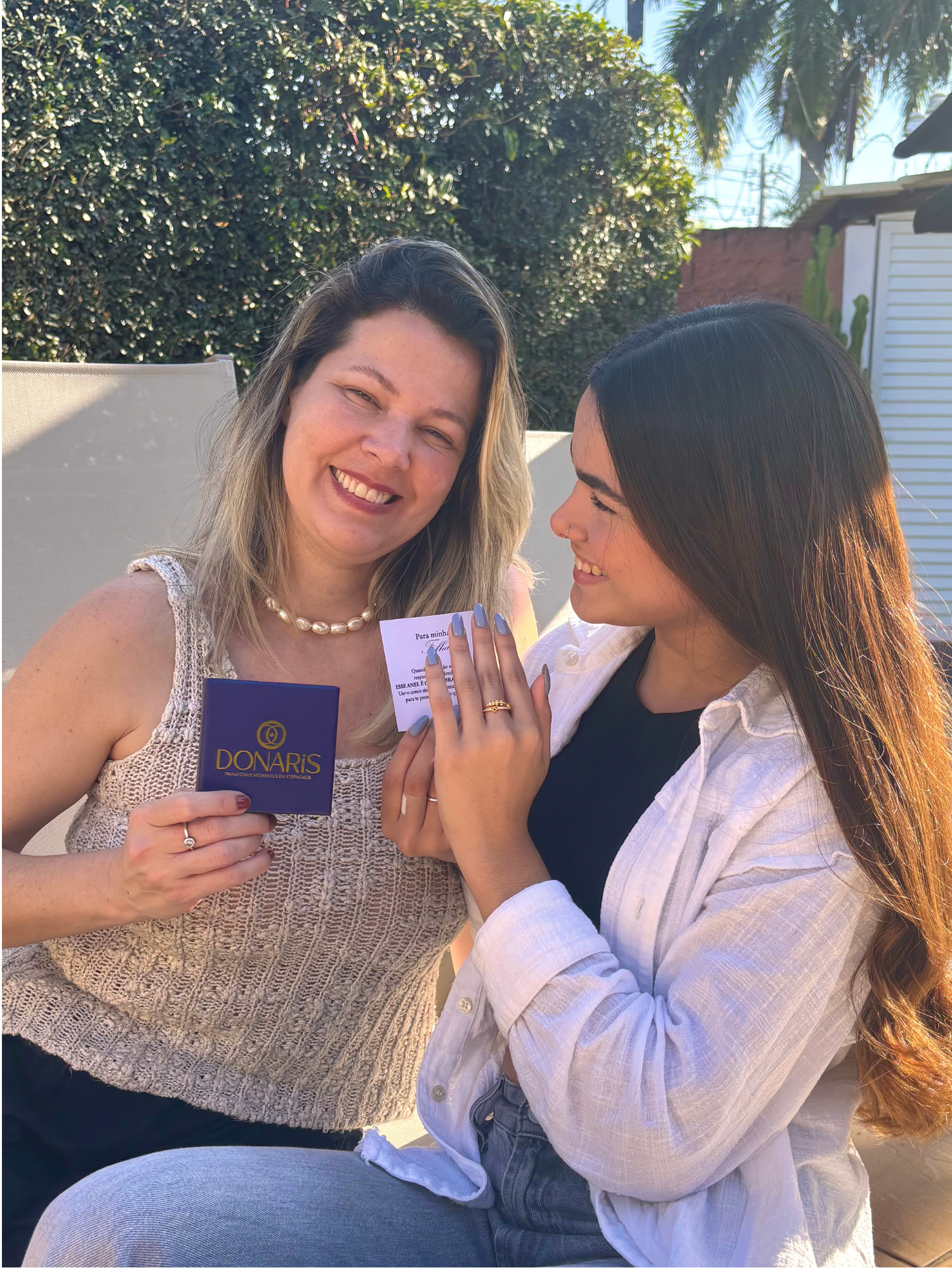 As joias Donaris são indicadas para presentear qualquer pessoa especial em sua vida, seja sua mãe, pai, filha, filho, neta, avô, irmã, parceiro ou amigo. Nosso objetivo é transformar sentimentos em presentes que aproximam e emocionam, oferecendo a peça perfeita para eternizar o amor e a conexão em qualquer ocasião, desde aniversários a formaturas.