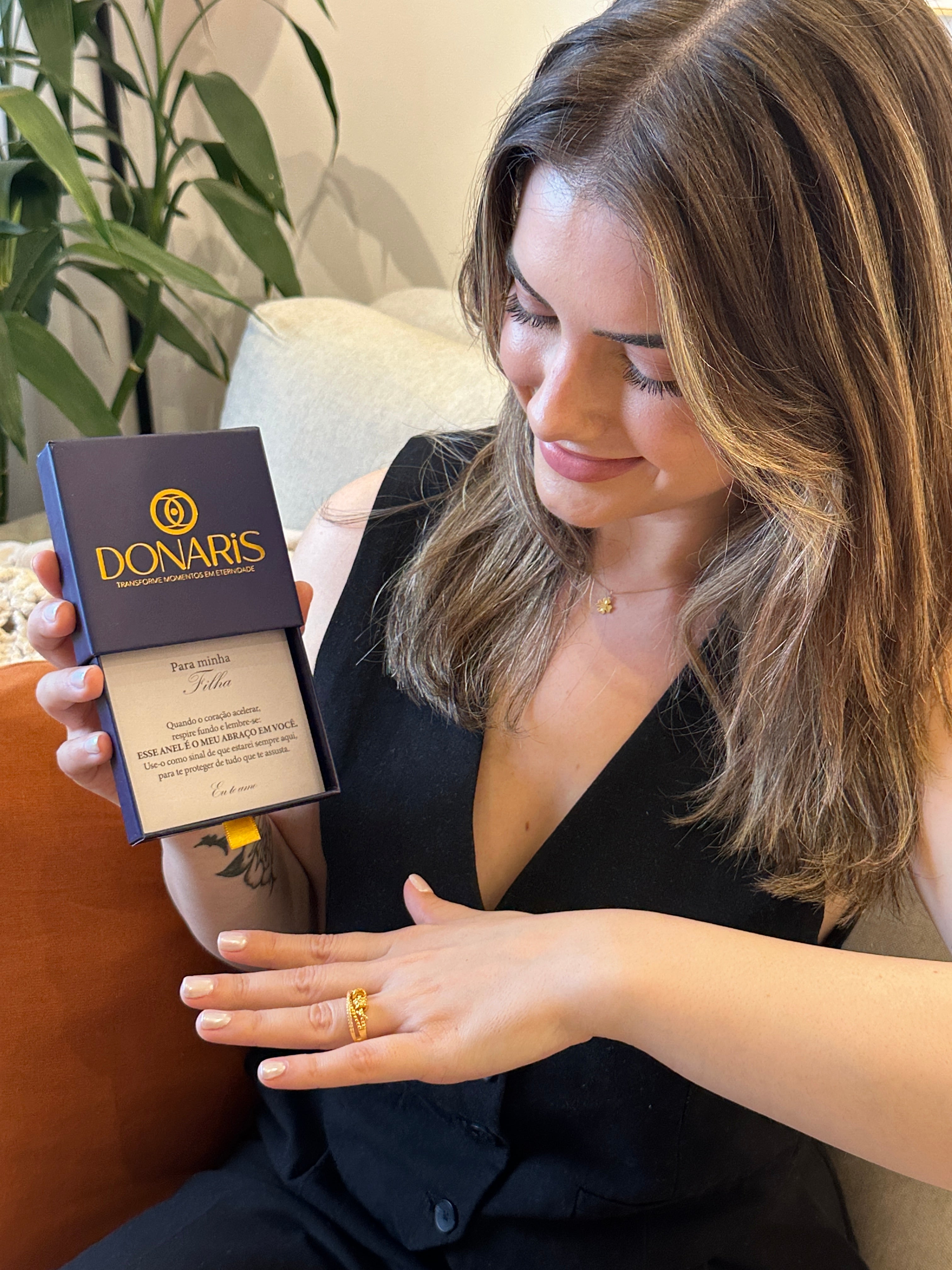 Na Donaris Joias, sabemos que a embalagem faz parte da experiência de presentear. Oferecemos embalagens premium que complementam a beleza da joia e a profundidade da mensagem. Nossas opções são pensadas para realçar o sentimento de carinho e surpresa, garantindo que o seu presente seja memorável desde o primeiro olhar e que ele reflita todo o cuidado e a intenção por trás do seu gesto de amor.